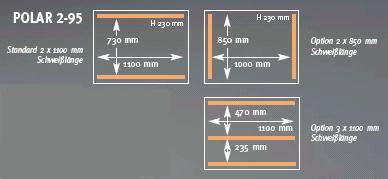optional mit je 3 parallelen Schweißleisten á 1100 mm - ( 2x ) 470 x 1100 x 230mm + ( 2x ) 235 x 1100 x 230 mm