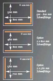 optional mit 2 parallelen Schweißleisten á 800mm - 460 x 800 x 200 mm
